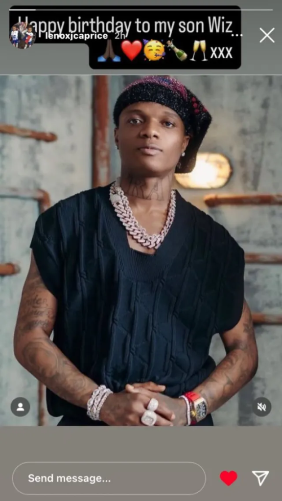 Taking to Instagram, Lenox posted a series of photos of the Grammy-winning Afrobeats star, accompanied by a touching caption that highlighted his deep admiration and affection for the singer. In his message, Caprice referred to Wizkid as a “beautiful soul” and praised him for his continued success, humility, and positive influence on those around him.
