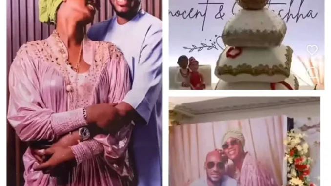 The couple was captured in a now trending video on social media, taking pictures with their traditional wedding cake.